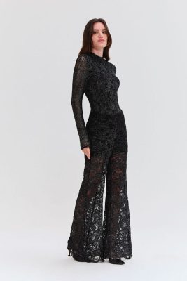 PatBO METALLIC LACE FLARE PANT BLACK | Womens Dresses & Jumpsuits